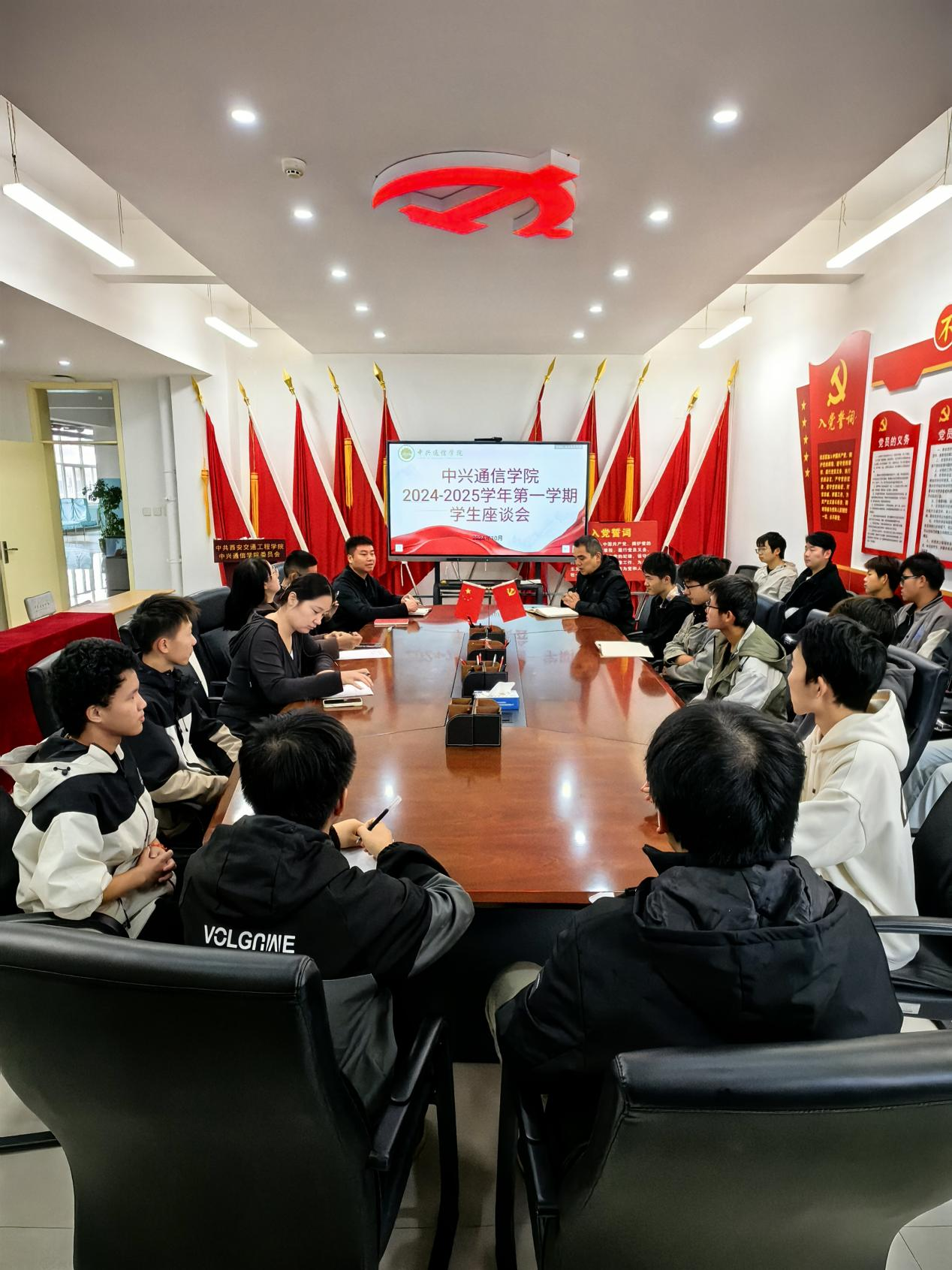 10月25日,中兴通信学院在党员活动室召开2024-2025学年第一学期学生座谈会,出席会议的有院长李乃乾,党委书记兼副院长张斌,副院长牛作领,年级组长薛华、聂林红,辅导员贾梦茹、杨馨烨,以及部分年级学生代表,会议由学工组长王鹏进行主持。