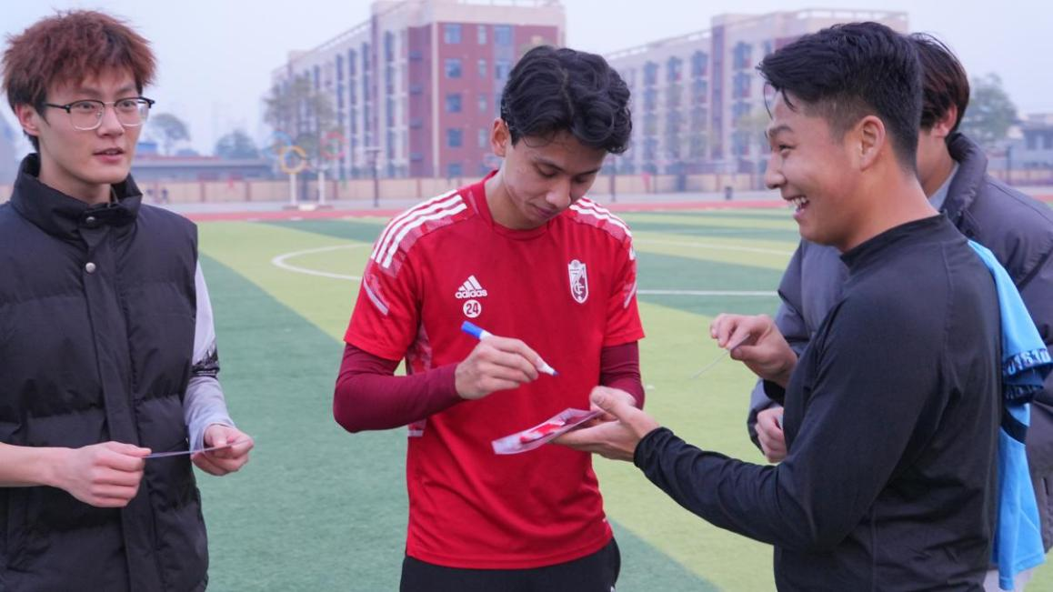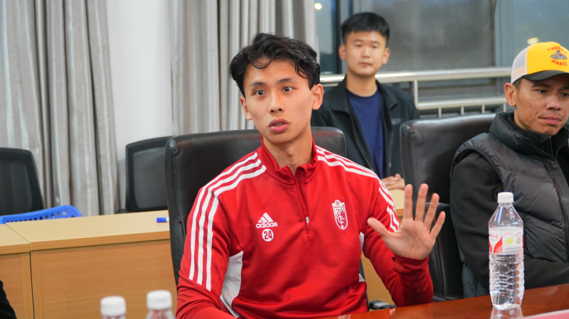 足球友谊赛结束后,师生前往行政楼会议室进行交流。交通运输学院党委书记钱穆萨首先对黎腾龙的到来表示热烈欢迎,他表示,希望通过此次交流活动加强校园与职业足球的融合发展,进一步推广校园足球运动,提升学生运动竞技水平,助力校园足球事业发展。随后,黎腾龙分享了自身的日常训练过程,并针对同学们提出的问题一一作出解答。专业的“零距离指导”让学生基本技能得到提升,现场气氛热烈,掌声不断。学校教职工足球协会副会长张磊表示学校一直以来高度重视校园足球的发展,今天这场球员与学生面对面的交流活动,意义非凡,希望我们同学们能够在交流中收获知识、收获友谊、收获成长。