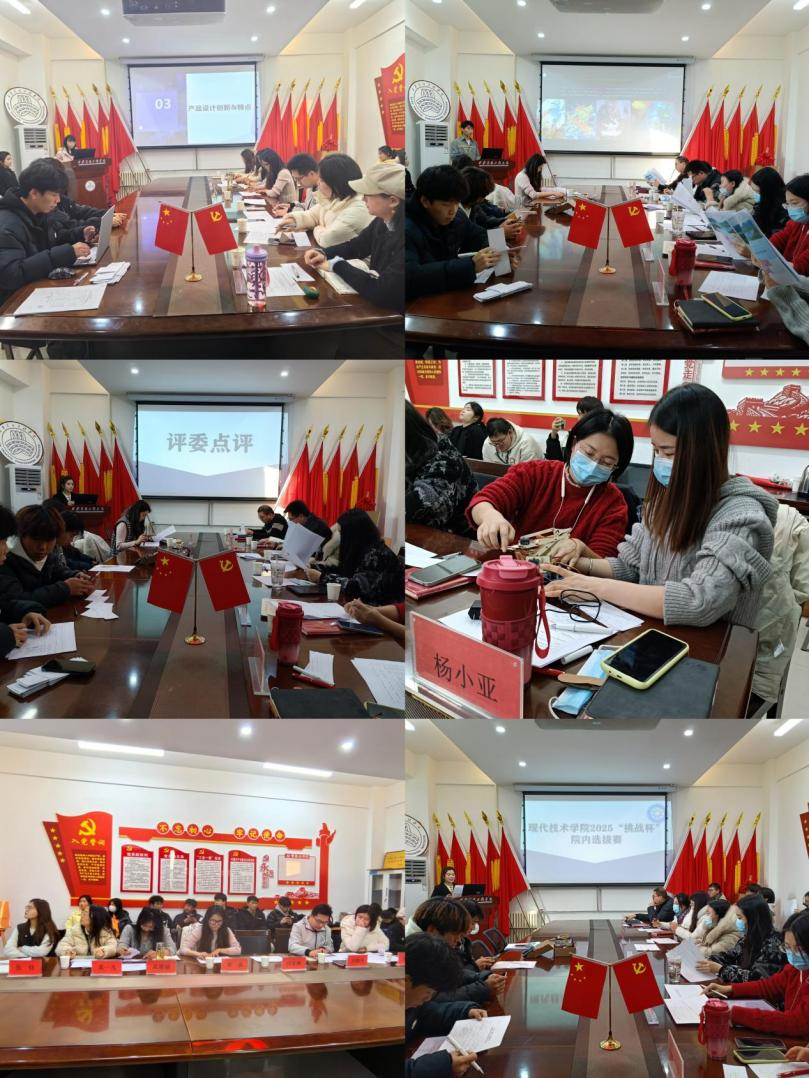 根据校团委《关于举办开云kaiyun官方网站 2025 年“挑战杯”大学生课外学术科技作品竞赛的预通知》要求,12月24日、25日,现代技术学院2025年“挑战杯”院内选拔赛顺利举行,旨在培养广大青年学生创新精神和实践能力,推进第二课堂与第一课堂同向同行、深度融合。学院党委书记田宏顺、团总支书记黄晶、任课教师张钰、高雅丽、袁一凡、问晓宇、马悦、张乐妍、任晓霞、闫闻芮、戚盼、杨小亚、李佳伦、刘若梦担任评委。30个参赛团队骨干人员参加选拔赛。