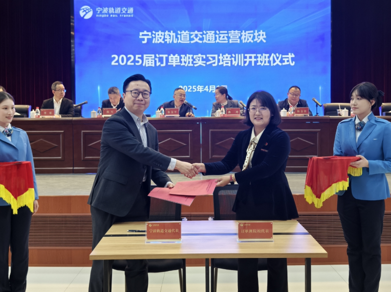 2025年3月31日,宁波轨道交通集团运营板块2025届订单班实习培训开班仪式在宁波轨道交通职工之家盛大举行。现代技术学院院长都娟丽、教师代表蔡莎以及订单班学员代表齐聚一堂,与宁波轨道交通集团领导、企业导师共同开启校企协同育人的崭新篇章。