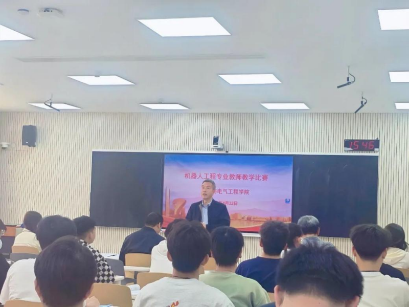 机械与电气工程学院院长在致辞中充分肯定了机器人工程专业在人才培养中的关键作用,指出教师教学能力直接影响学生专业素养和创新能力的提升,并鼓励教师们以赛促教、以教促研,持续推动教学质量提升,强调本次比赛不仅是展示教学风采的重要平台,更是推动学院教学改革、深化教育创新的有力举措。为确保比赛教学内容质量,参赛教师提前深入备课,结合专业特点与学生需求,设计出内容科学、形式多样的教学方案。从课件打磨到案例筛选,从模拟讲课到集体磨课,教师们积极探索、相互切磋,全面展现了严谨的教学态度与不断进取的精神风貌,为比赛的顺利开展打下了坚实基础。