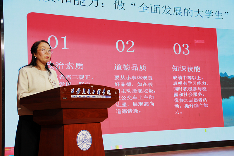 田佳丽以“锚定信仰方向,夯实成长根基”为主题,围绕入党的核心内容为新生作了系统讲解。通过介绍入党条件、完整流程以及党员的权利与义务,为新生构建了清晰的入团入党认知框架,使大家准确把握从申请到转正各环节的要求与标准。她强调,入团入党不是形式化的“任务”,而是大学生在人生关键时期的重要价值选择,是将个人理想融入党和国家事业、实现精神成长的重要途径。结合“青年兴则国家兴”的时代号召,她鼓励新生深入学习党的创新理论和光辉历史,以严谨态度校准思想坐标,以务实行动践行初心使命,积极向党组织靠拢,努力成长为专业能力过硬、理想信念坚定的合格党员,在民族复兴征程中肩负起青年一代的使命。