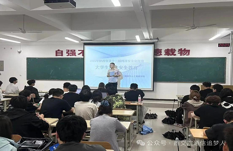二是 网络安全教育宣传周主题班会。活动紧密结合学院专业特色,超越了常规的防诈骗宣传,提升了专业维度。通过教师讲座、辩论赛、虚拟仿真等形式,聚焦“AI算法安全”、“通信数据安全”等前沿议题,让学生深刻认识到作为未来通信与AI领域的从业者,所肩负的网络安全责任。这堂课旨在培育兼具技术创新能力与安全守护意识的新工科人才。