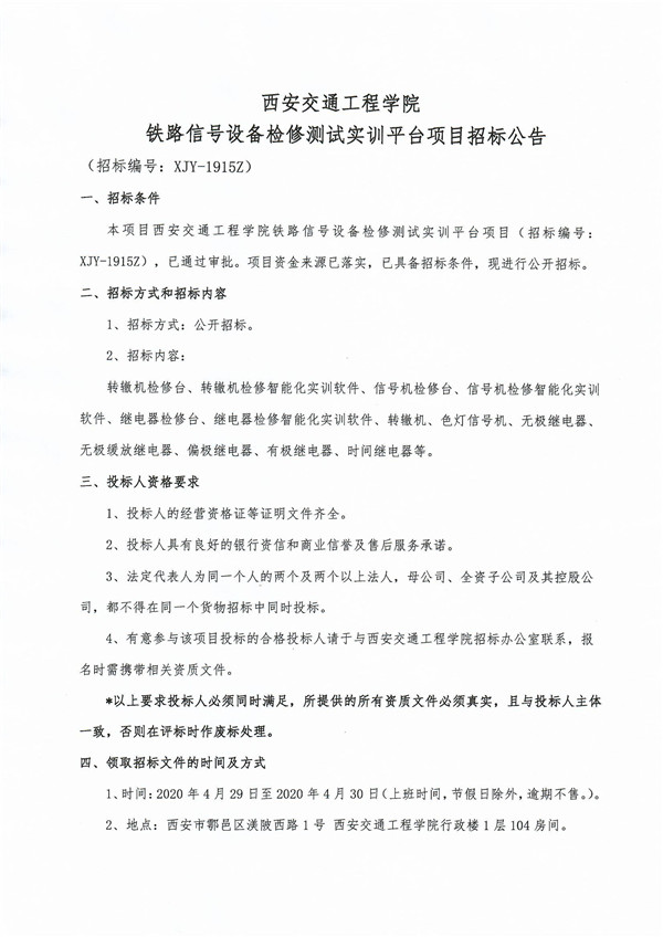 开云kaiyun官方网站铁路信号设备检修测试实训平台项目招标公告