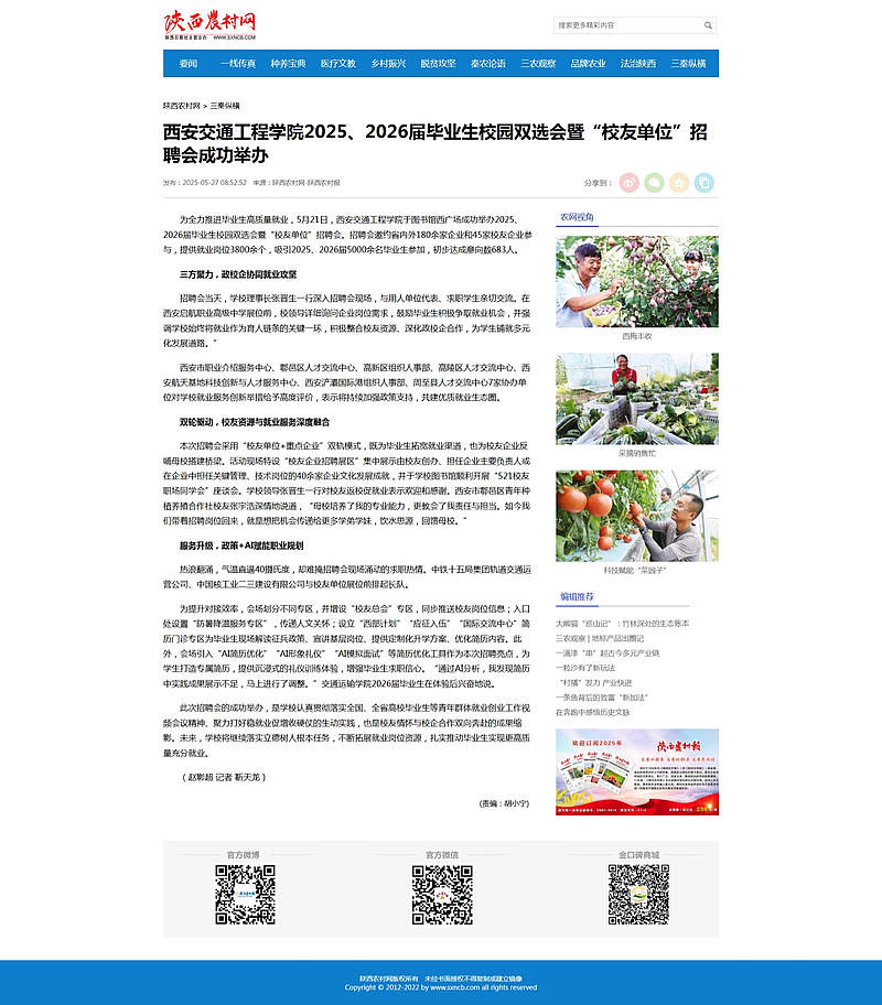 西安市职业介绍服务中心、鄠邑区人才交流中心、高新区组织人事部、高陵区人才交流中心、西安航天基地科技创新与人才服务中心、西安浐灞国际港组织人事部、周至县人才交流中心7家协办单位对学校就业服务创新举措给予高度评价,表示将持续加强政策支持,共建优质就业生态圈。