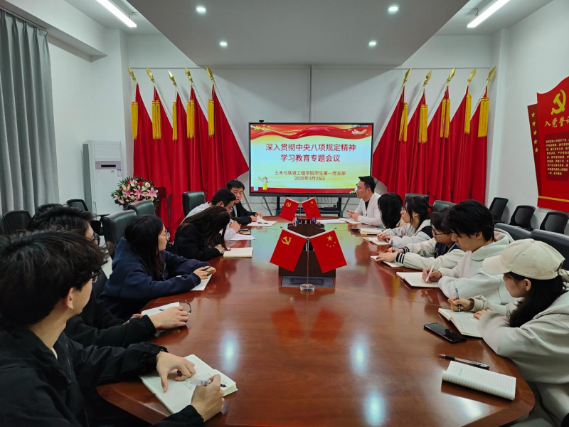 3月25日下午,土木与铁道工程学院在崇文楼3-212党员活动室召开了深入贯彻中央八项规定精神学习教育动员部署会,全面落实学校关于深入贯彻中央八项规定精神学习教育工作的部署要求。该院党委委员、各支部委员参加了会议,党委书记张雯雯主持会议并作动员讲话。