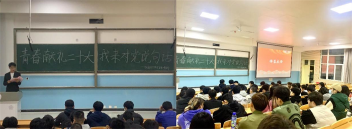 ——开展“我想对党说句话”主题演讲比赛。11月4日,该院学生第一党支部在教学楼8-201举办“ 我想对党句话”主题演讲比赛。9位选手用成熟稳重或激情昂扬的演讲,结合自己的实际工作,表达了对党的热爱,抒发了浓浓的爱党、爱国情怀。一段段文辞优美的叙述,引起观众的强烈共鸣,掌声不断。此次演讲比赛弘扬了大家的爱国热情,表达了对党的二十大胜利召开的憧憬和喜悦。