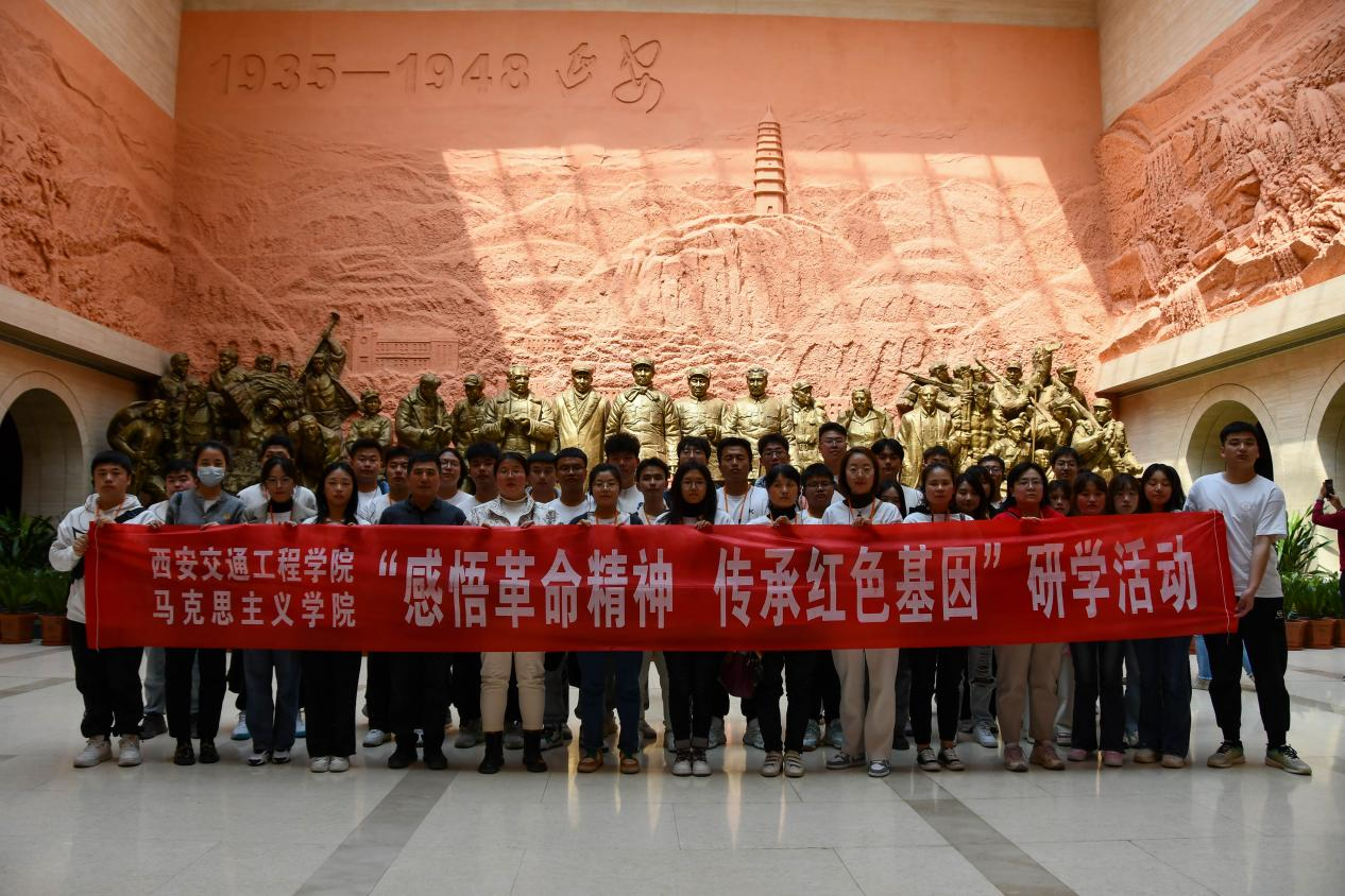 为贯彻落实中共陕西省委教育工作领导小组秘书组中共陕西省委教育工委关于全省教育系统深入学习贯彻习近平总书记在中国人民大学考察时重要讲话精神的通知,以学深悟透习近平总书记重要讲话精神为引领,组建师生研学团队寻访重温习近平总书记重要考察足迹,实地寻访习近平总书记考察过的革命老区、街乡社区、纪念馆、博物馆等地,切身体验党的二十大以来我国经济社会发生的历史性变化,取得的历史性成就,深刻感受习近平总书记的领袖风范和人民情怀,4月1日-2日,马克思主义学院组织部分师生赴延安开展了以“感悟革命精神 传承红色基因”为主题的研学活动。