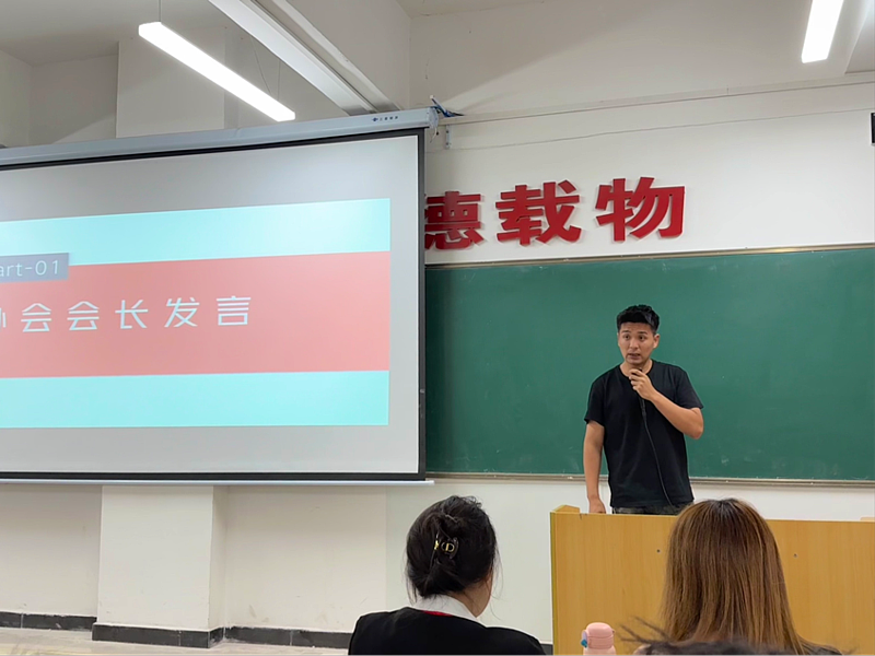 田森森同学详细介绍了语言文字协会的宗旨、活动内容和发展规划。协会将以“弘扬语言文化,提升文字素养”为宗旨,开展丰富多彩的活动,如诗歌朗诵比赛、书法展览、写作讲座、推普助力乡村振兴等活动,为同学们提供更多展示自我、锻炼能力的机会。