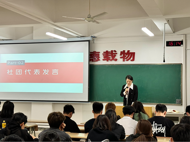 协会代表苏芮同学在发言中抒发了对语言文字的热忱以及对社团未来发展的坚定信心。他表示,会积极投身于社团活动,全力学习语言文字知识,为社团的发展奉献出自己的一份力量。